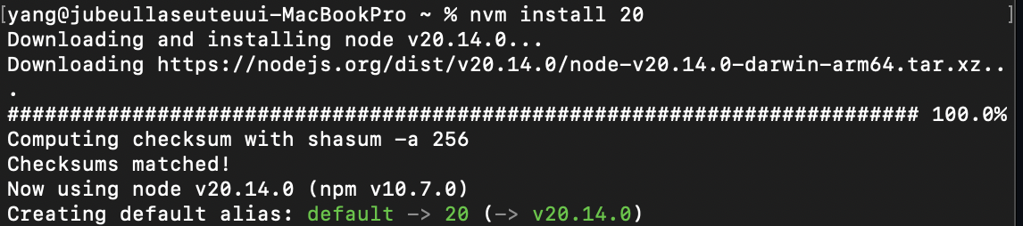 노드 에서 최신이면서 가장 안전한버전인 20버전을 설치하였다.
