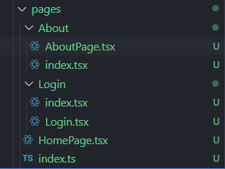 pages폴더의 각 컴포넌트당 정의된 index.tsx에서 예를들면 AboutPage.tsx의 export를 가져와 React.lazy를 덮어쓴후 export한걸 가져와 사용함.