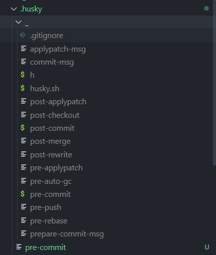 그렇게 프로젝트에 설치된 .husky폴더내의 파일들이 보인다.