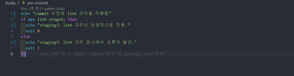 아까 husky를 설치해서 나왔던 .husky폴더에 pre-commit파일을 열어준다.